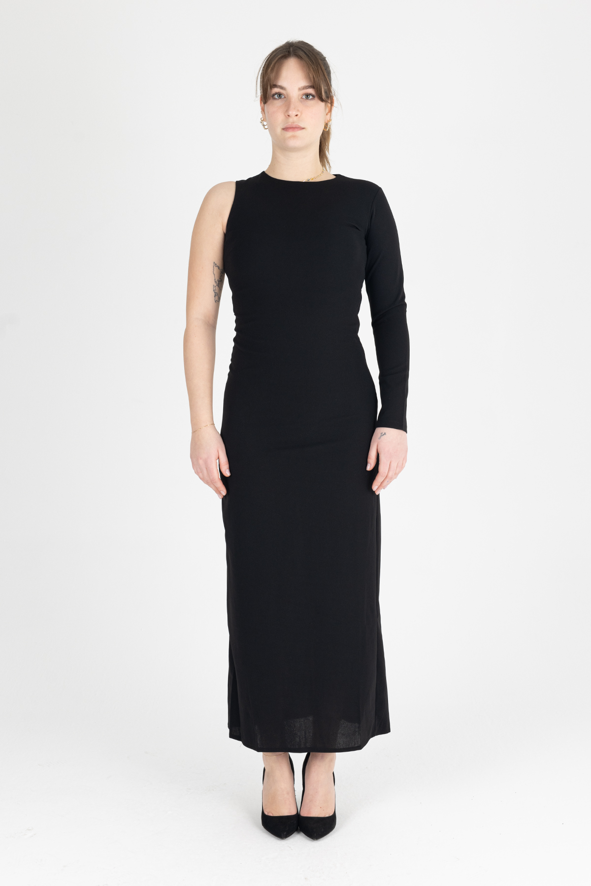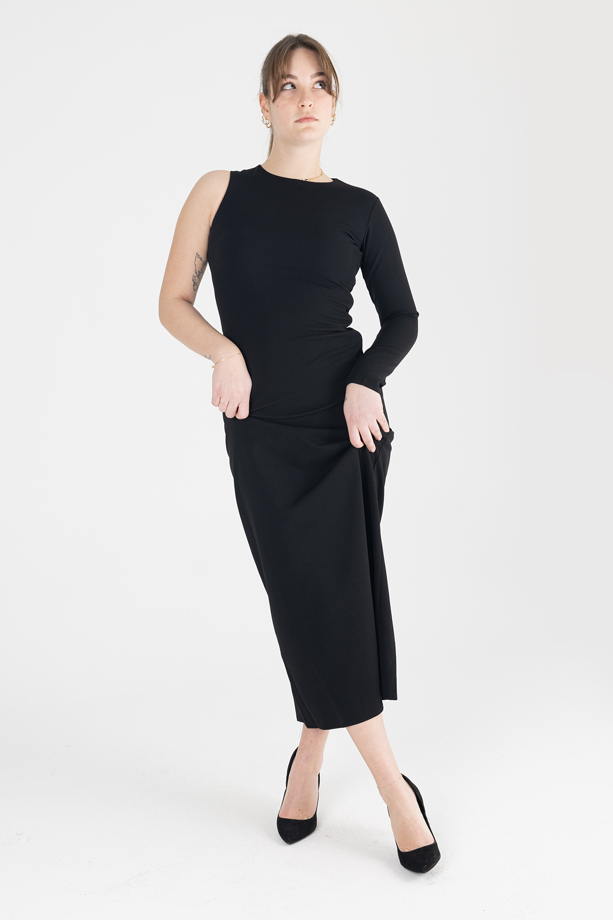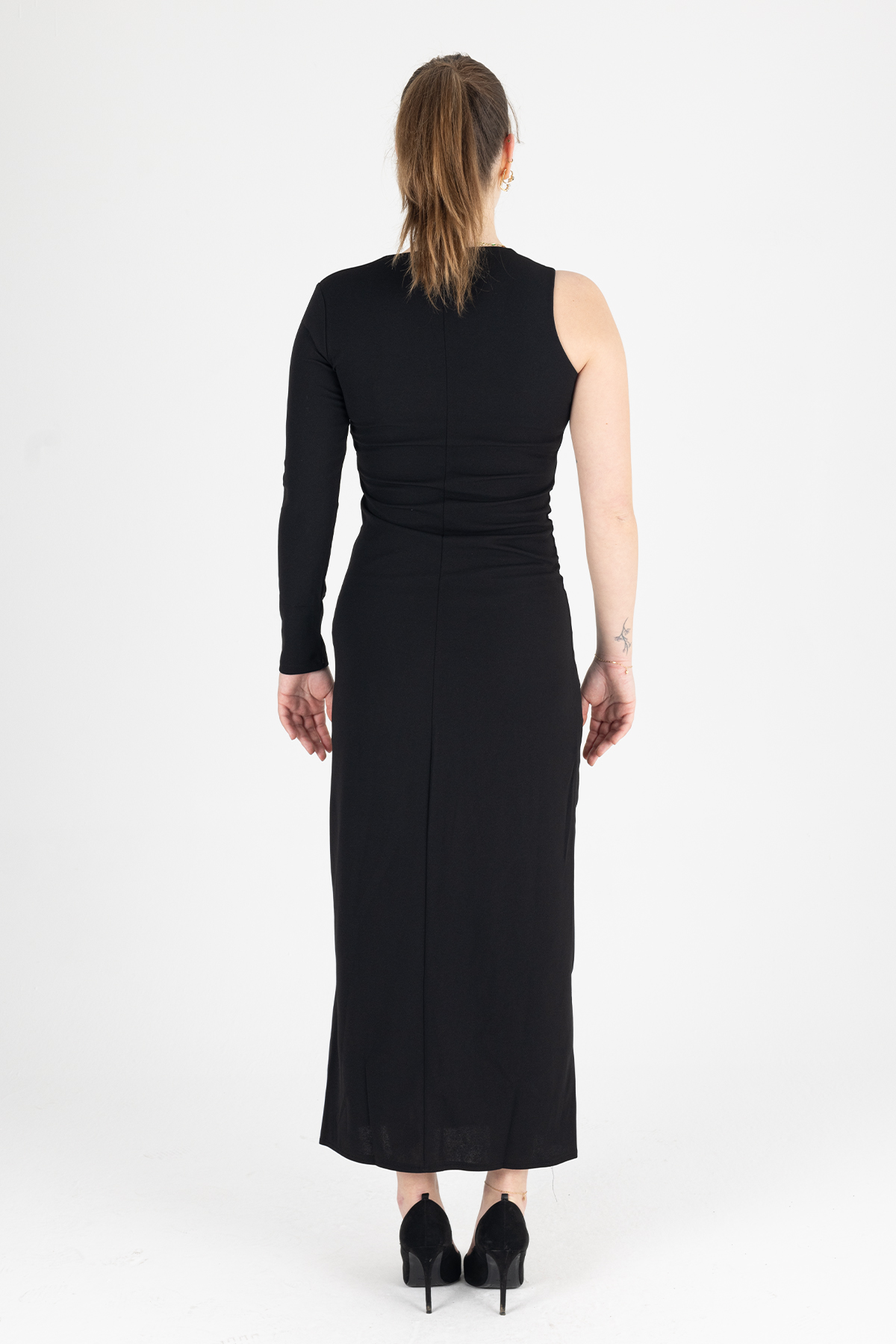 Paylen Asimetrik Tek Kollu Siyah Elbise
