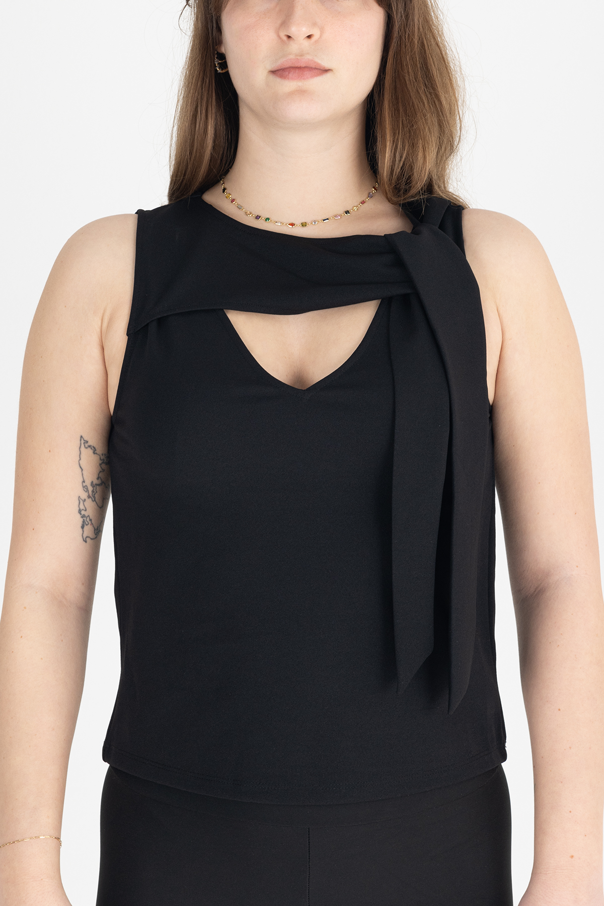 Paylen Asimetrik Yaka Detaylı Siyah Bluz
