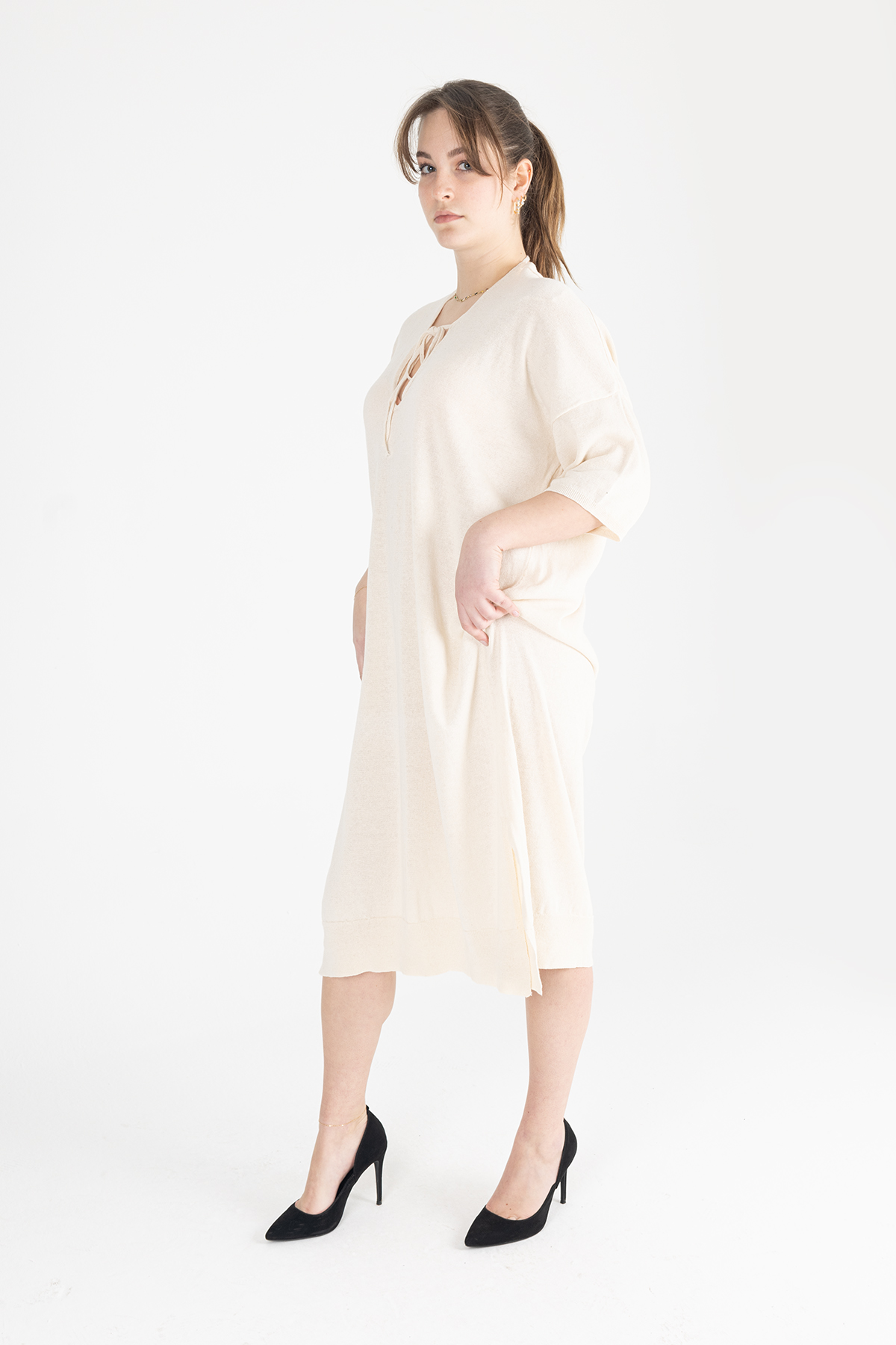 Paylen Bağcık Detaylı Oversize Triko Elbise