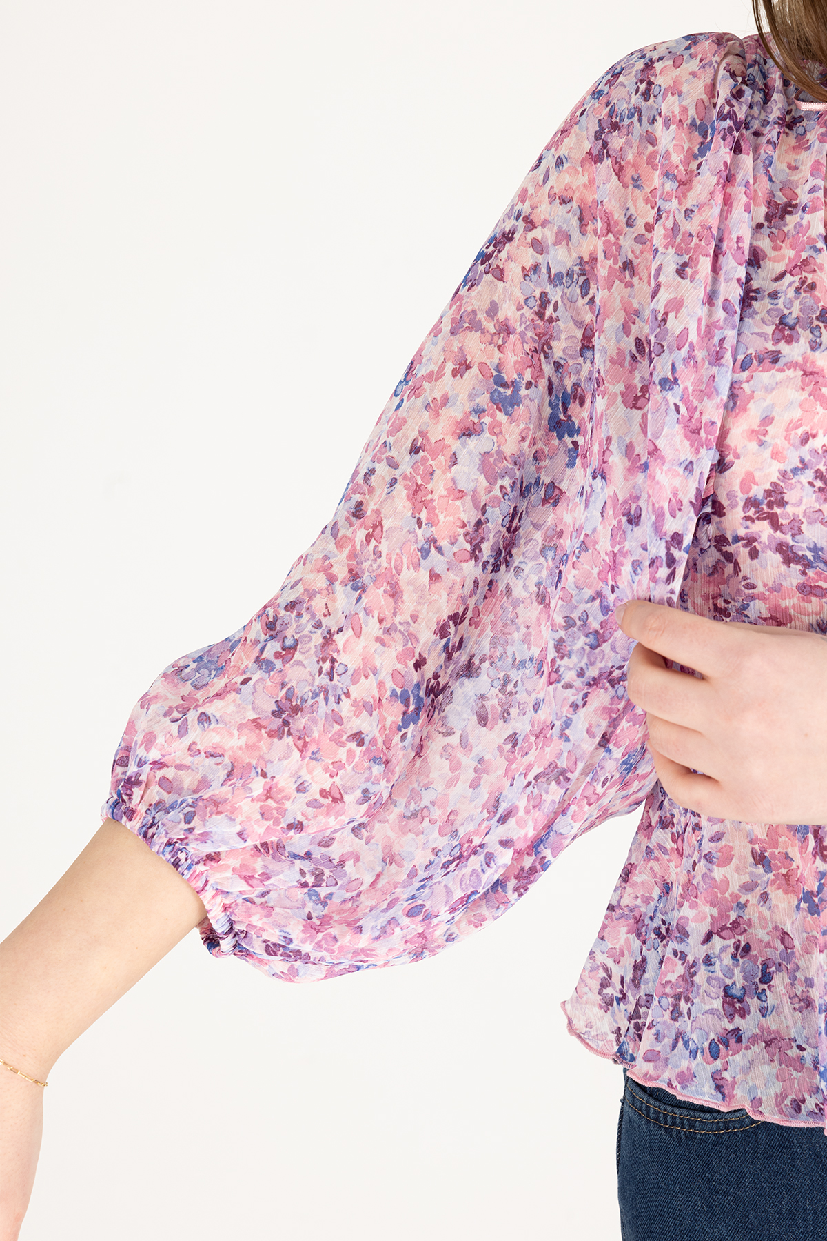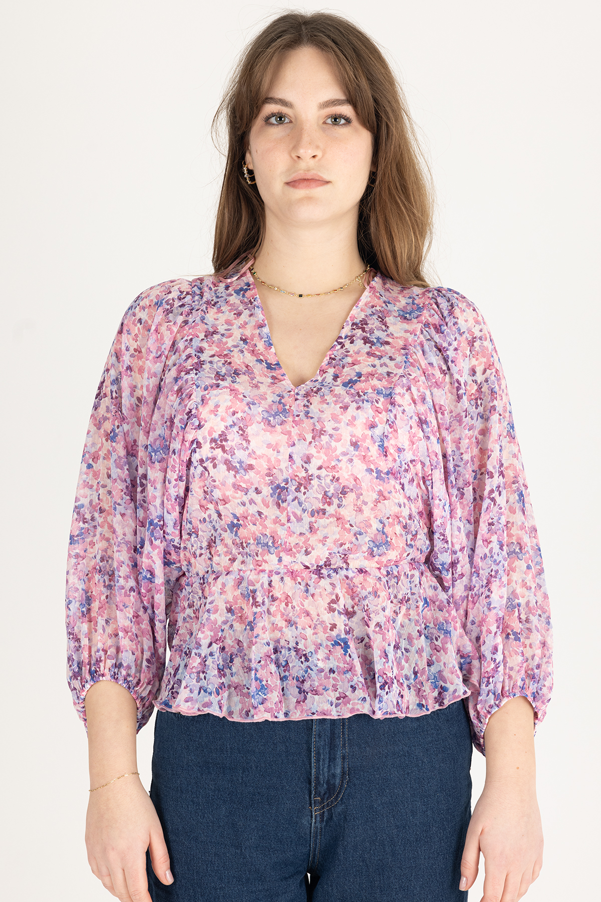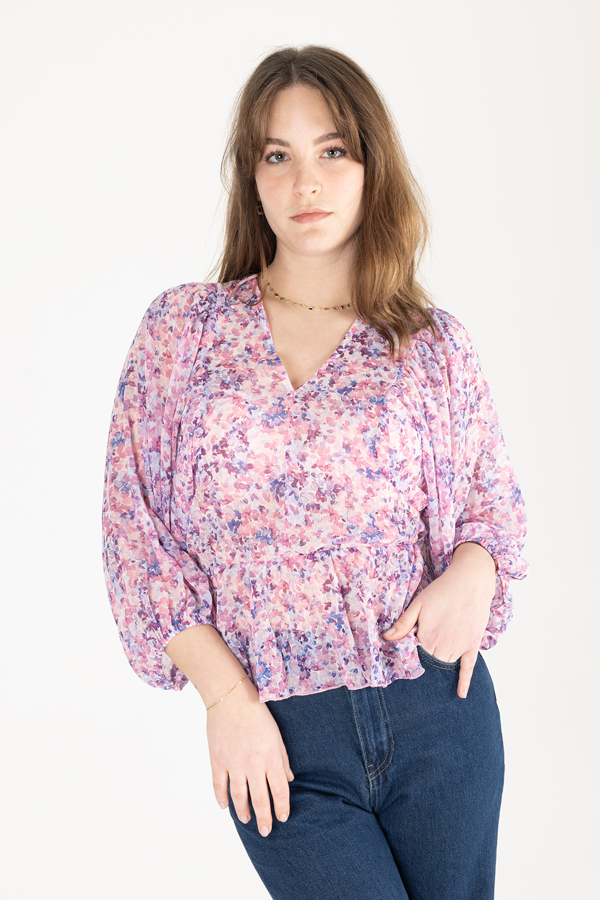 Paylen Çiçek Desenli Peplum Bluz ( Mor Renkler )