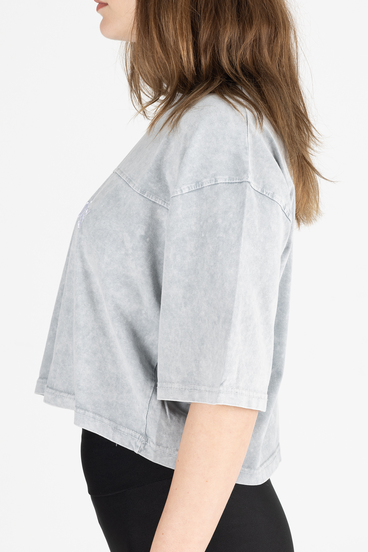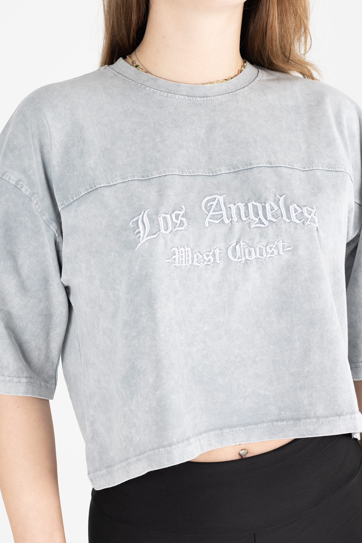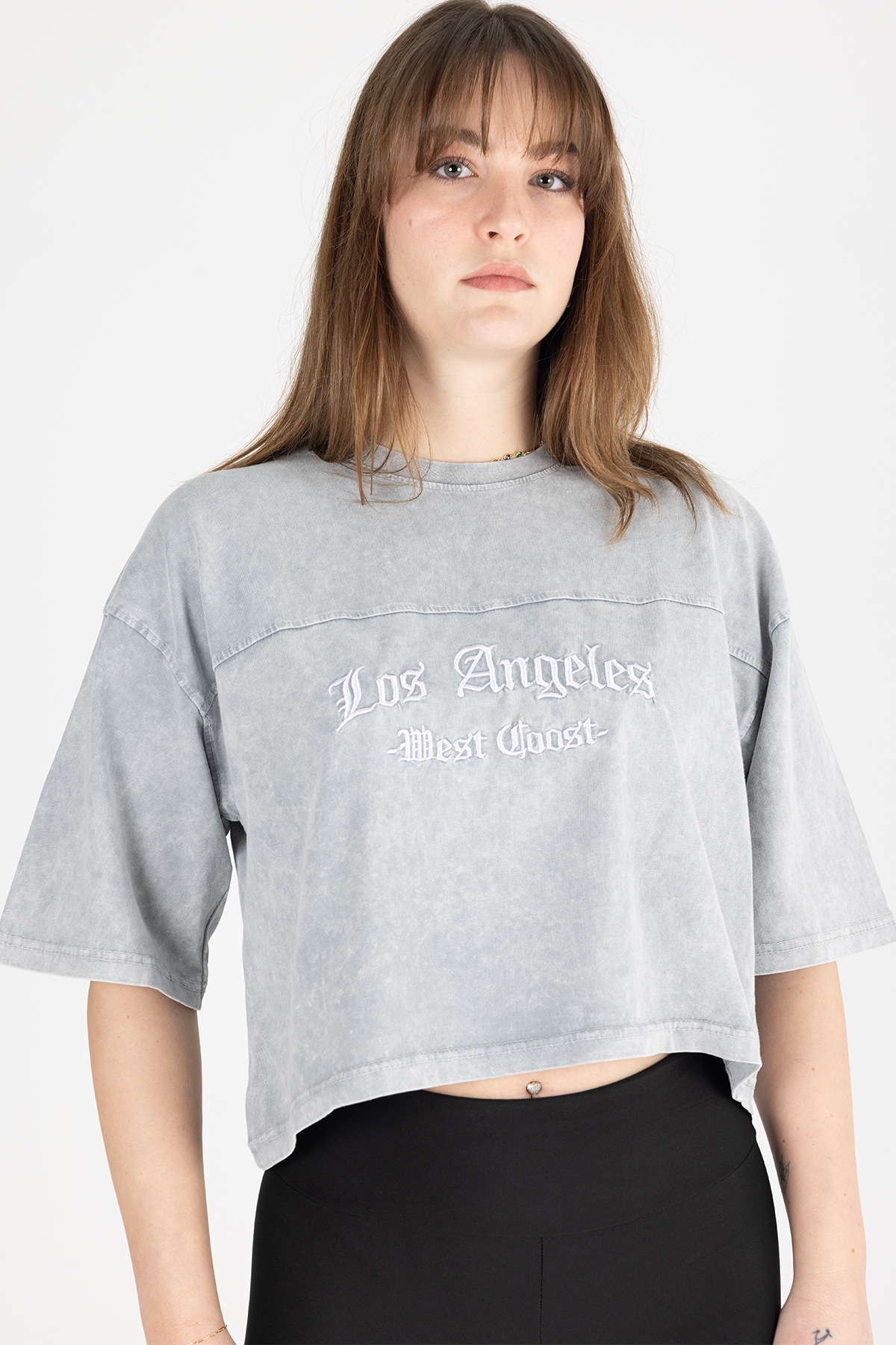 Paylen Los Angeles Yazılı Yıkamalı Gri Crop T-Shirt