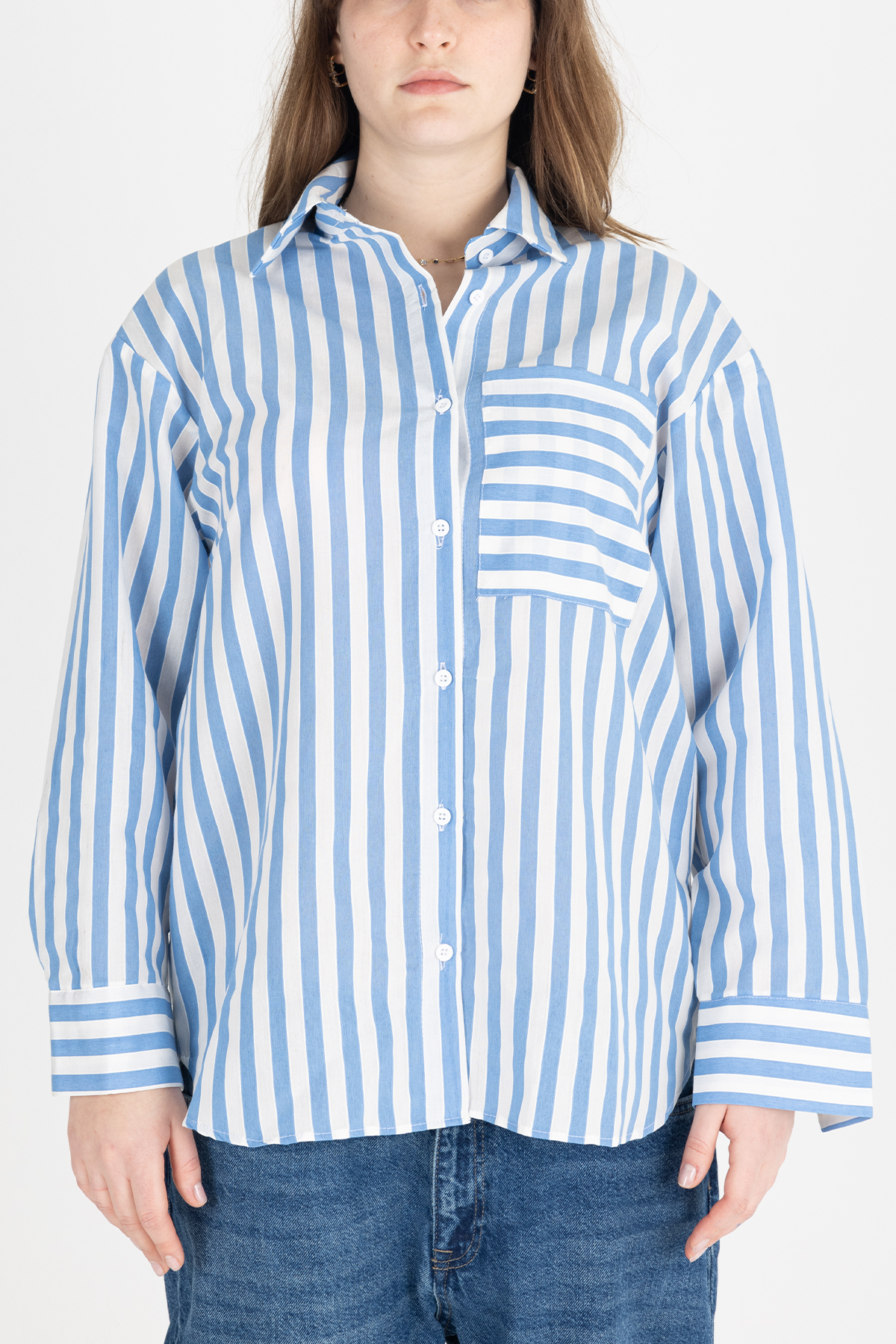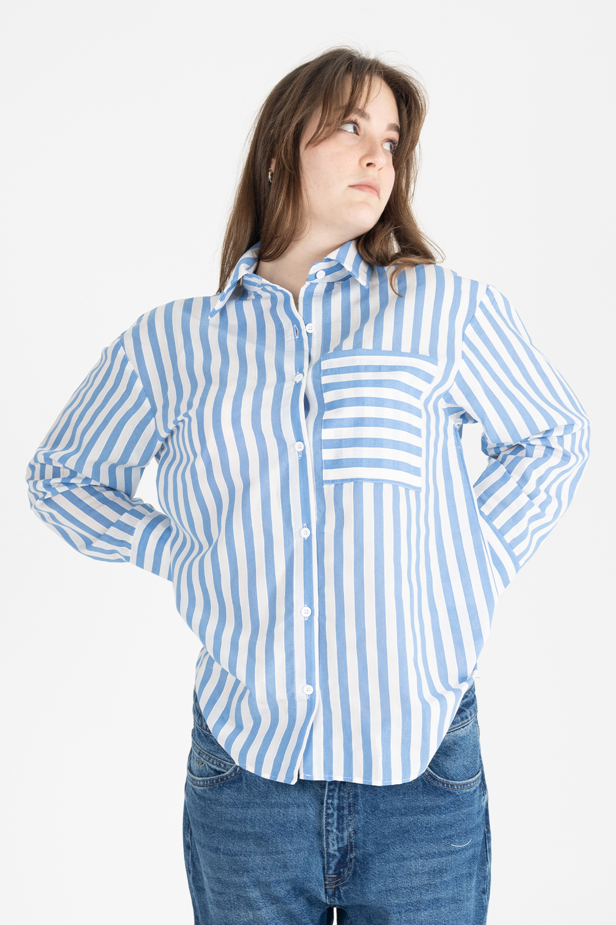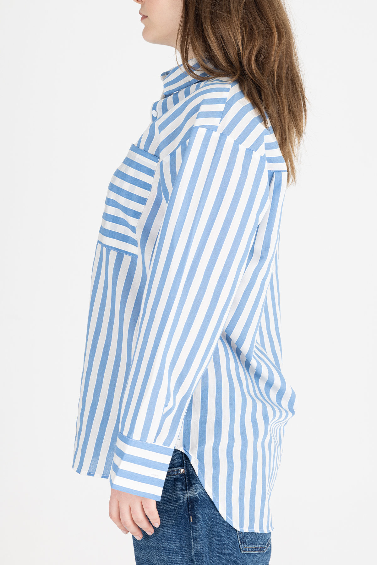 Paylen Mavi Beyaz Çizgili Oversize Gömlek