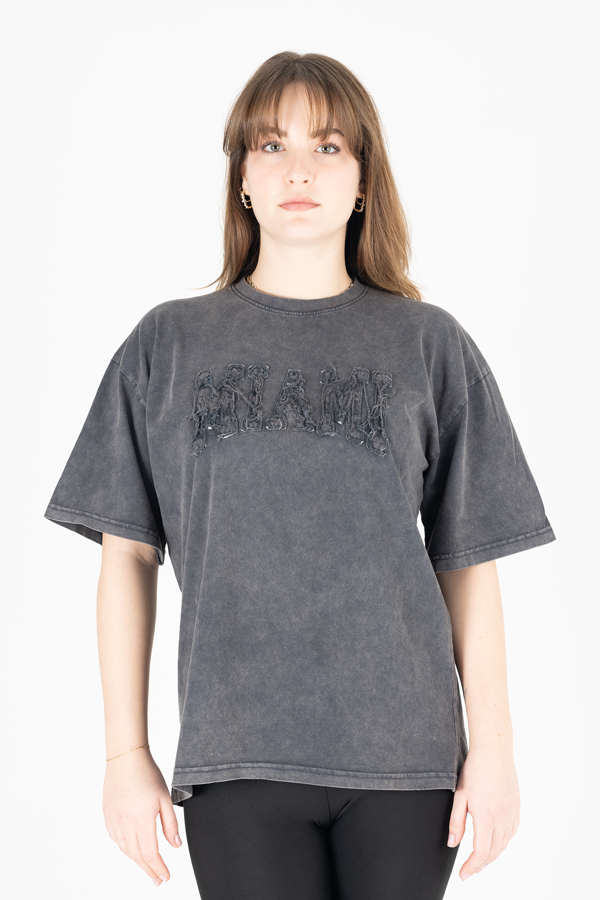 Paylen Miami Yazılı Yıkamalı Gri Oversize T-Shirt