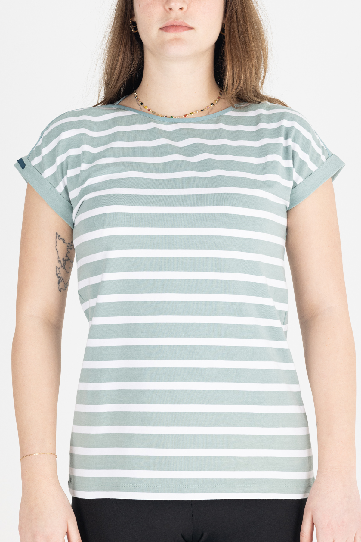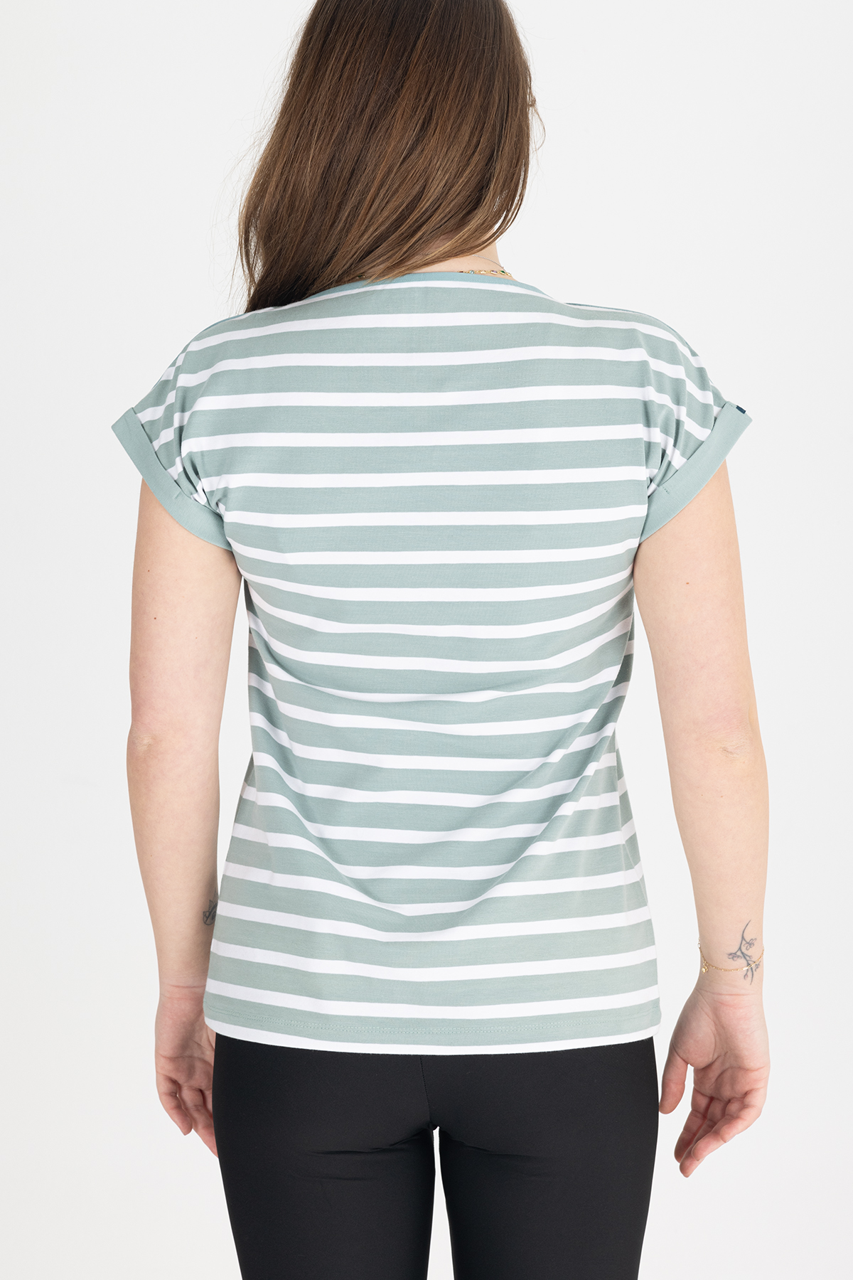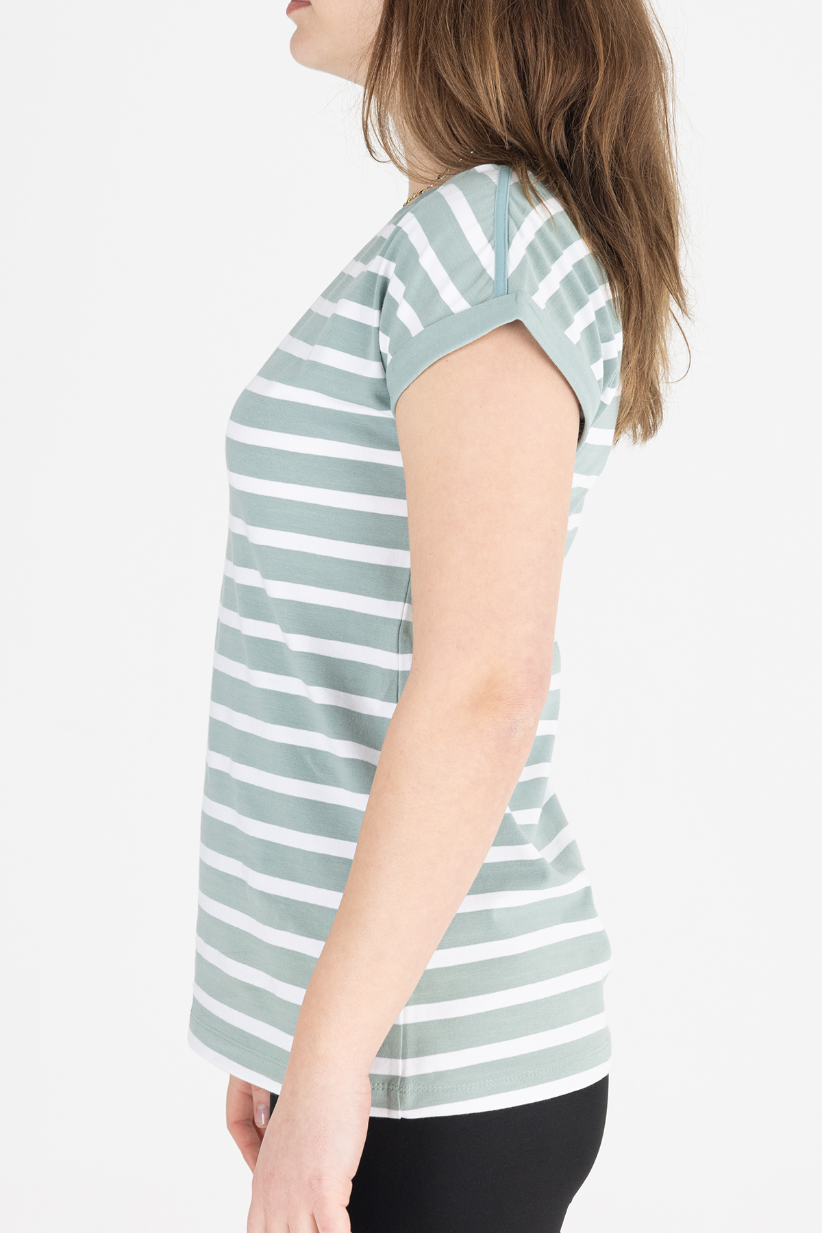 Paylen Mint Yeşil Çizgili Basic T-Shirt