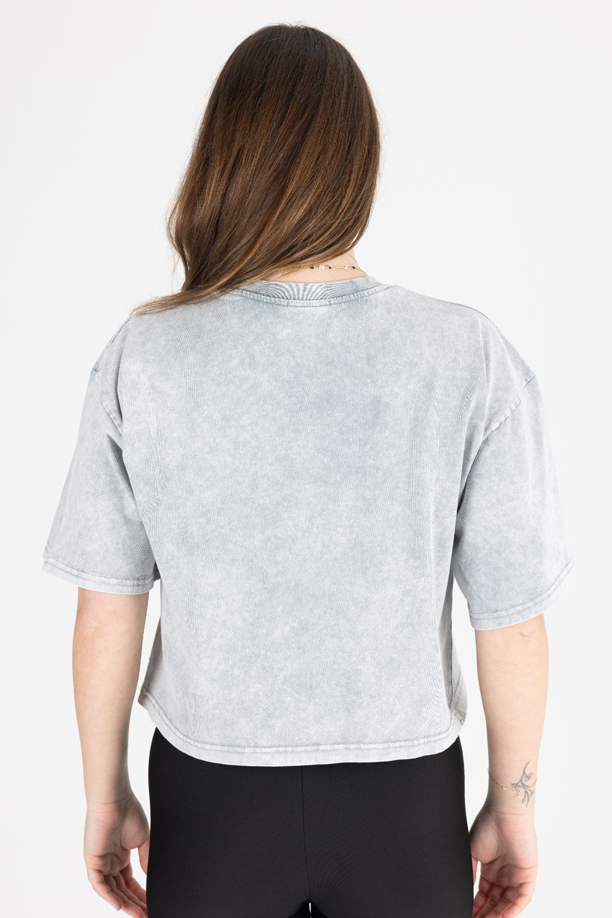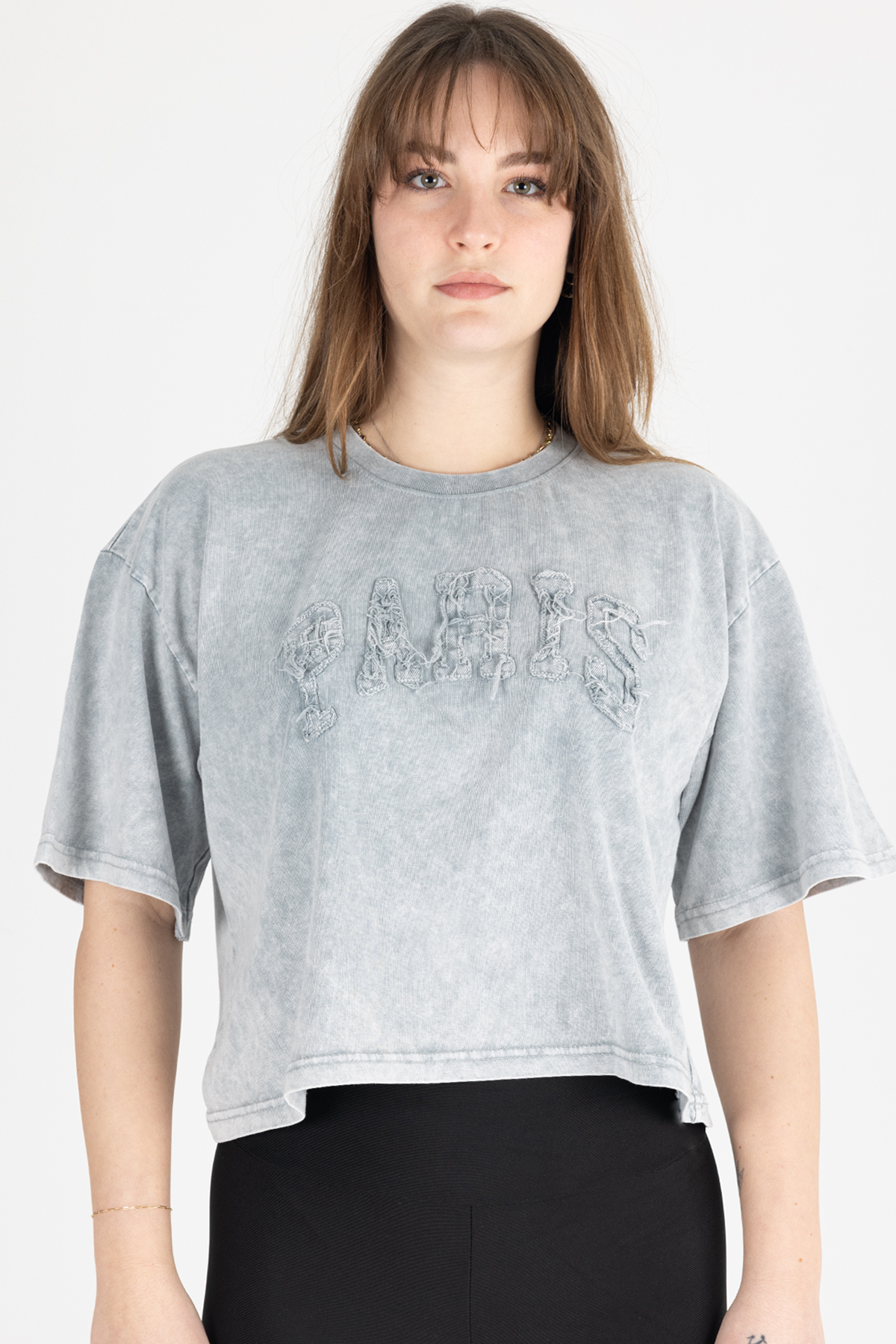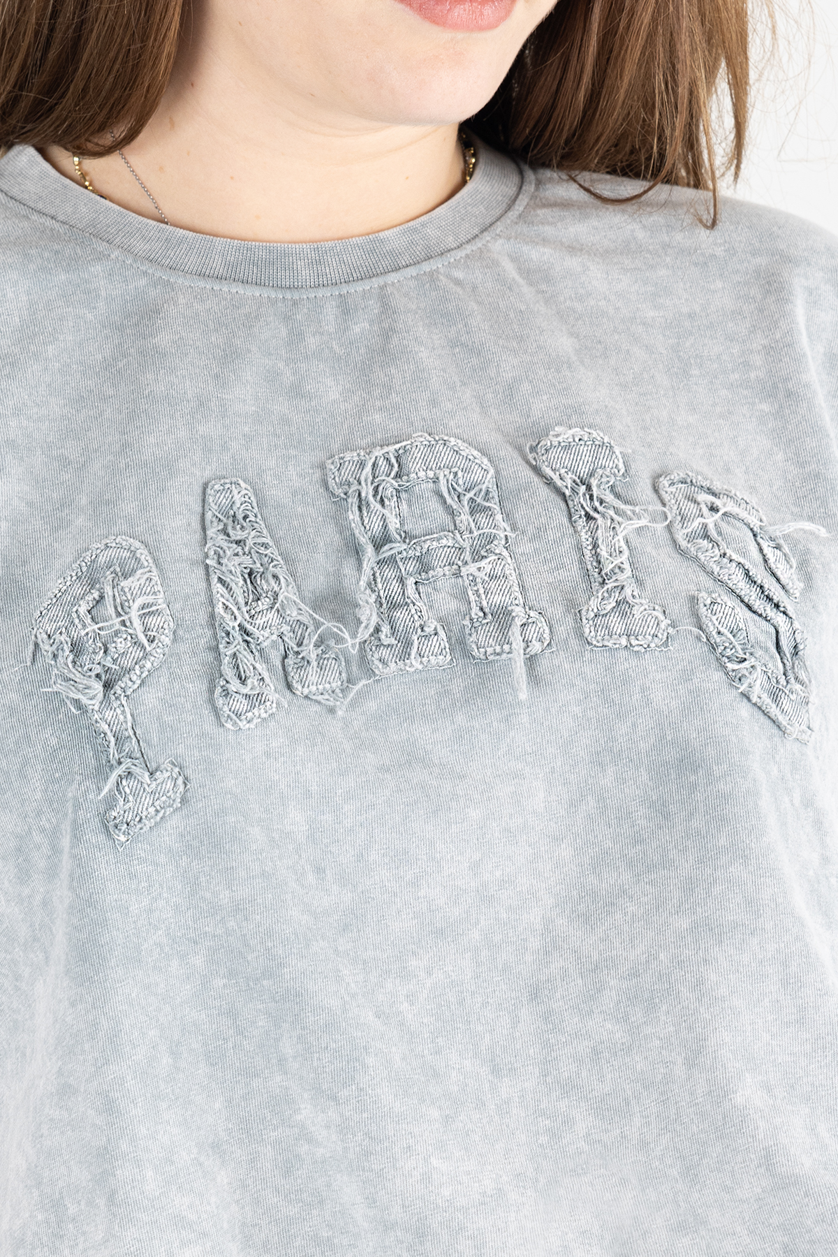 Paylen Paris Yazılı Yıkamalı Gri Oversize T-Shirt