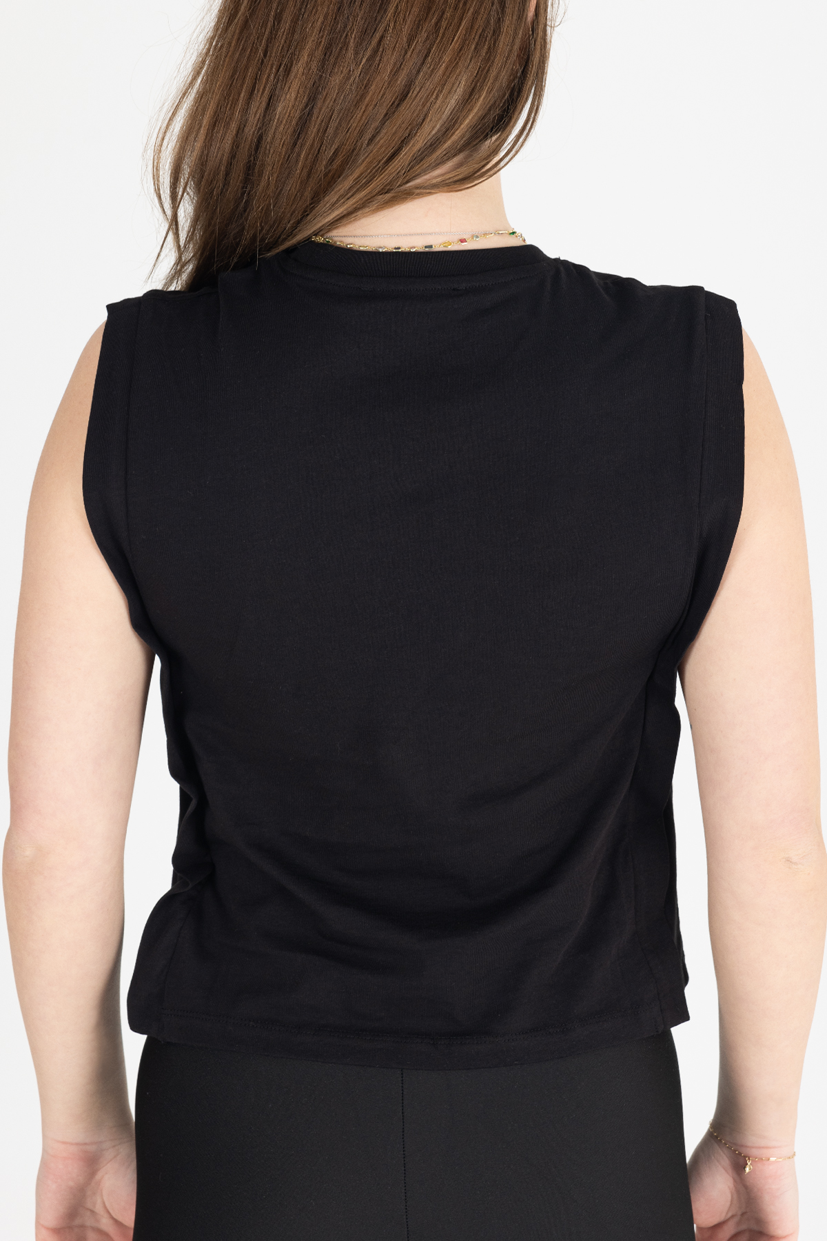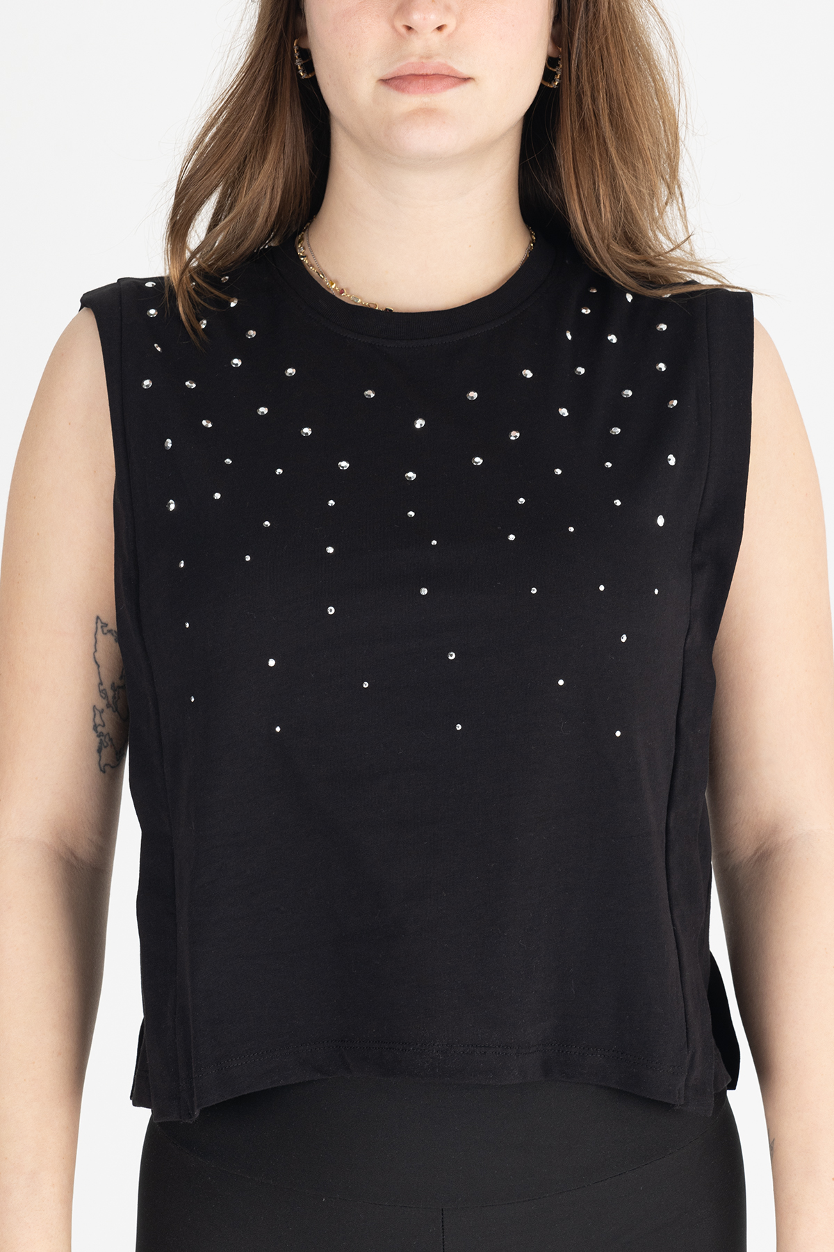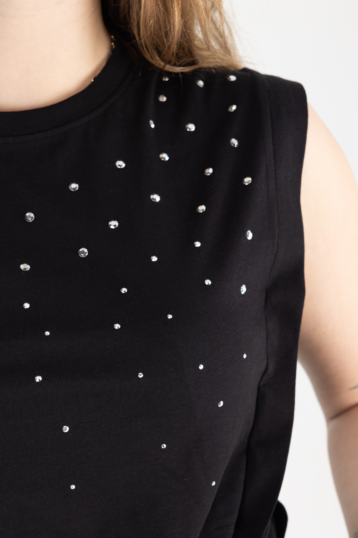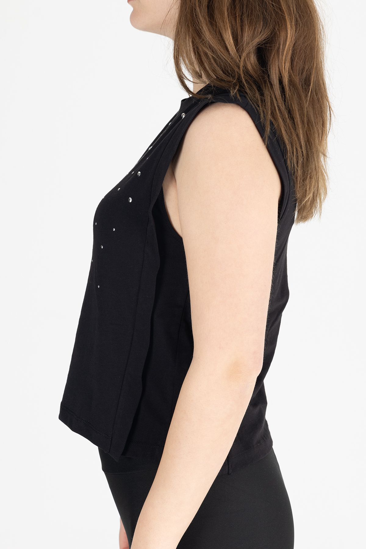Paylen Siyah Taş Detaylı Kolsuz Crop T-Shirt