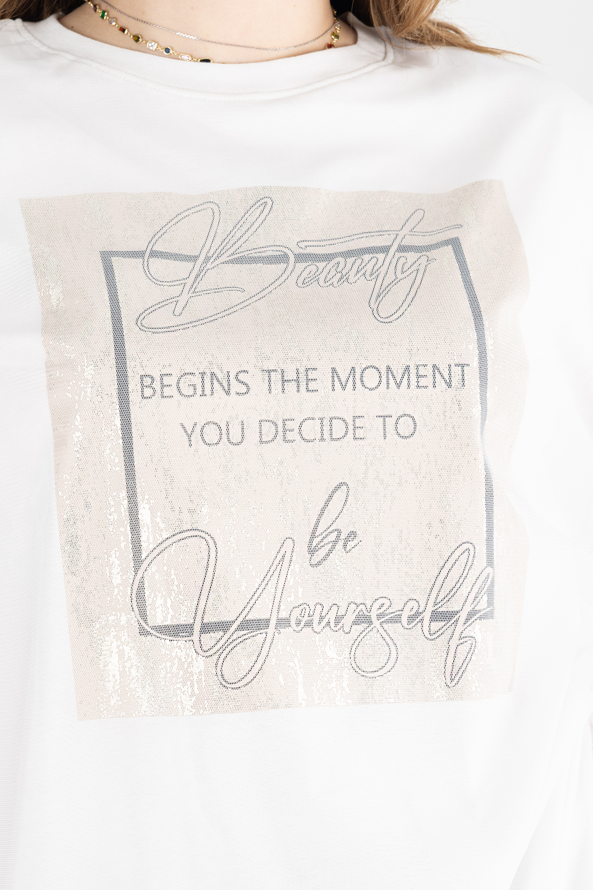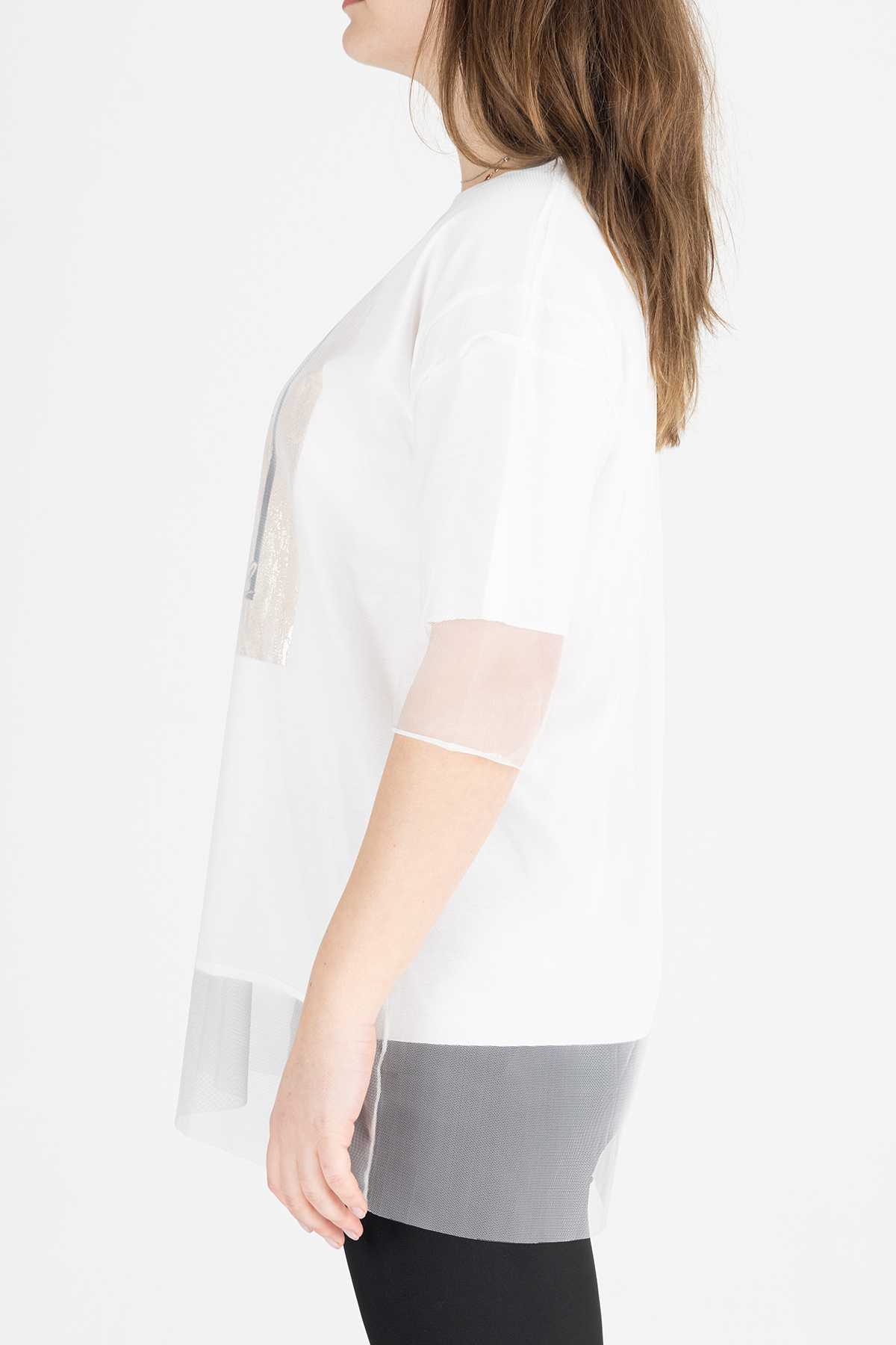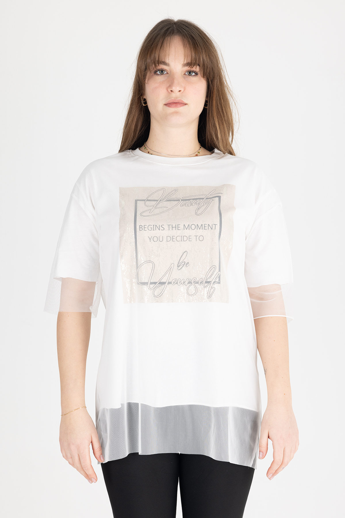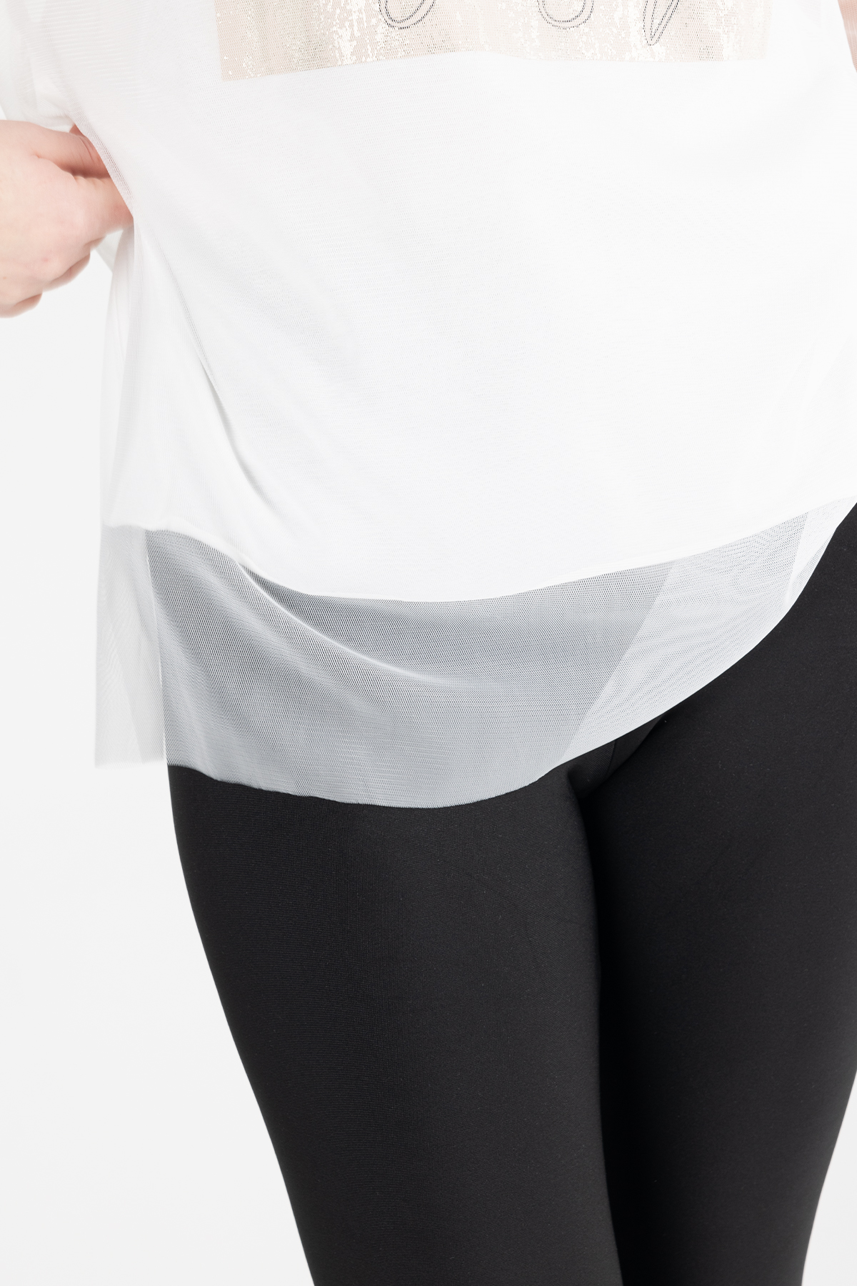 Paylen Tüllü Detaylı Beyaz Baskılı T-Shirt